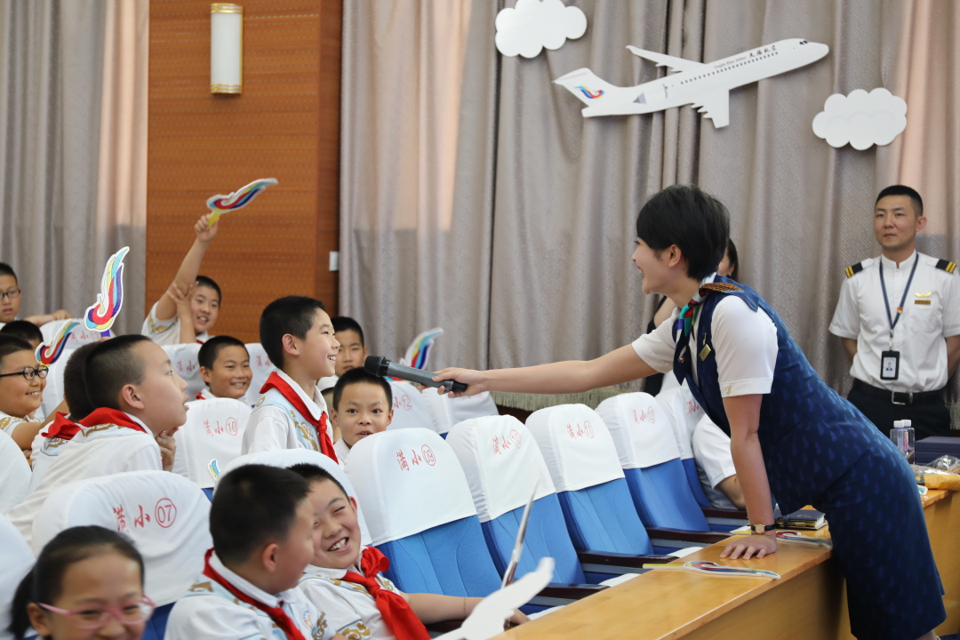 活動主要由“五個一”組成,即:觀看一部航空飛行表演專題片、講授一堂航空主題知識講座、參與一輪航空知識互動問答、體驗一次機上救生設(shè)備和近距離感受一下國產(chǎn)民機ARJ21飛機等。