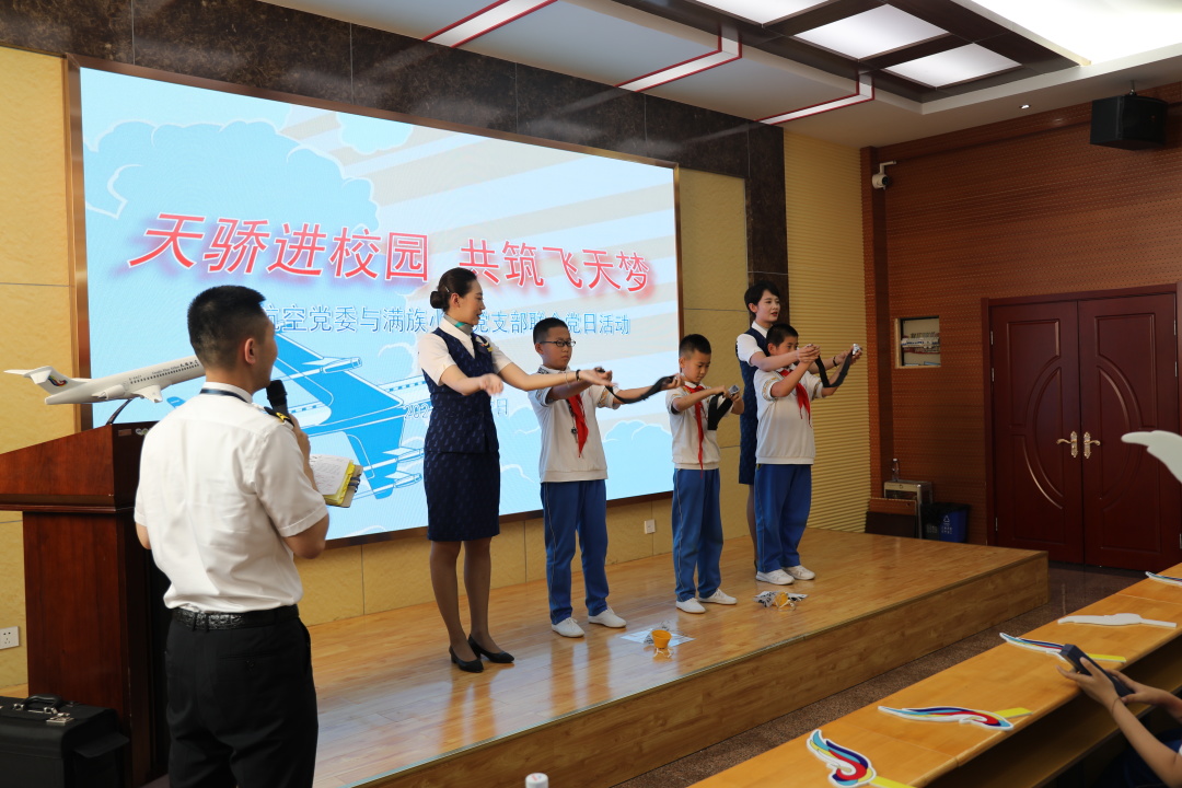 為讓廣大青少年了解航空知識和自治區(qū)航空業(yè)現(xiàn)狀與特色, 6月17日,天驕航空有限公司黨委和呼和浩特滿族小學(xué)黨支部結(jié)合黨史學(xué)習(xí)教育,聯(lián)合舉辦了“天驕進(jìn)校園 共筑飛天夢——‘我為群眾辦實事’”主題黨日活動。