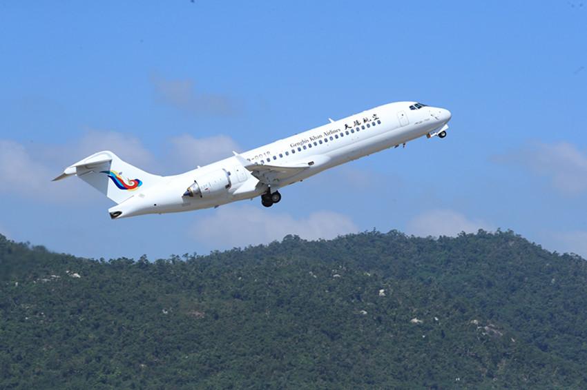 作為首家國(guó)產(chǎn)噴氣客機(jī)機(jī)隊(duì)運(yùn)營(yíng)平臺(tái),天驕航空上承成都航空安全運(yùn)送旅客18萬人次的寶貴經(jīng)驗(yàn),下啟中國(guó)民機(jī)全面進(jìn)入商業(yè)運(yùn)營(yíng)的歷史階段。面對(duì)挑戰(zhàn),天驕航空將與中國(guó)商飛密切配合,在搜集反饋信息、機(jī)型優(yōu)化、保障對(duì)接等方面不懈努力,與中華民族航空工業(yè)一起成長(zhǎng),讓更多的國(guó)產(chǎn)飛機(jī)展翅翱翔在祖國(guó)的藍(lán)天。