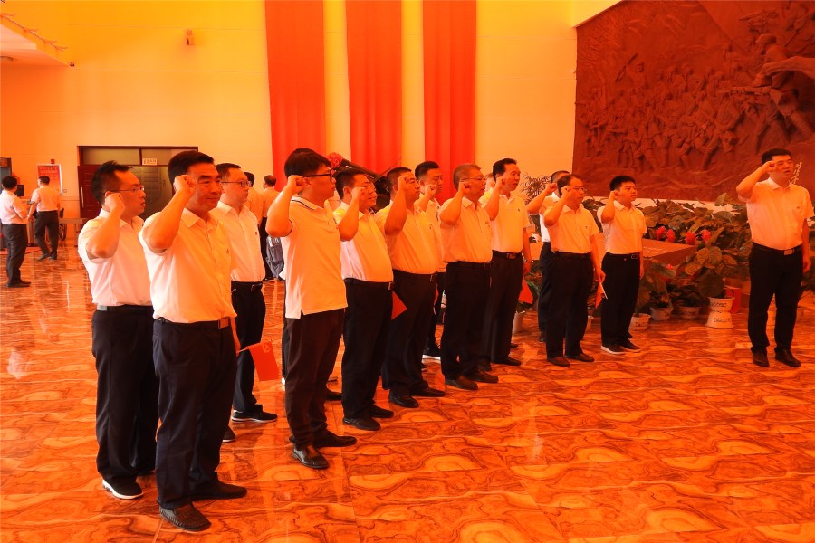 全體黨員宣誓。 閆勝/攝