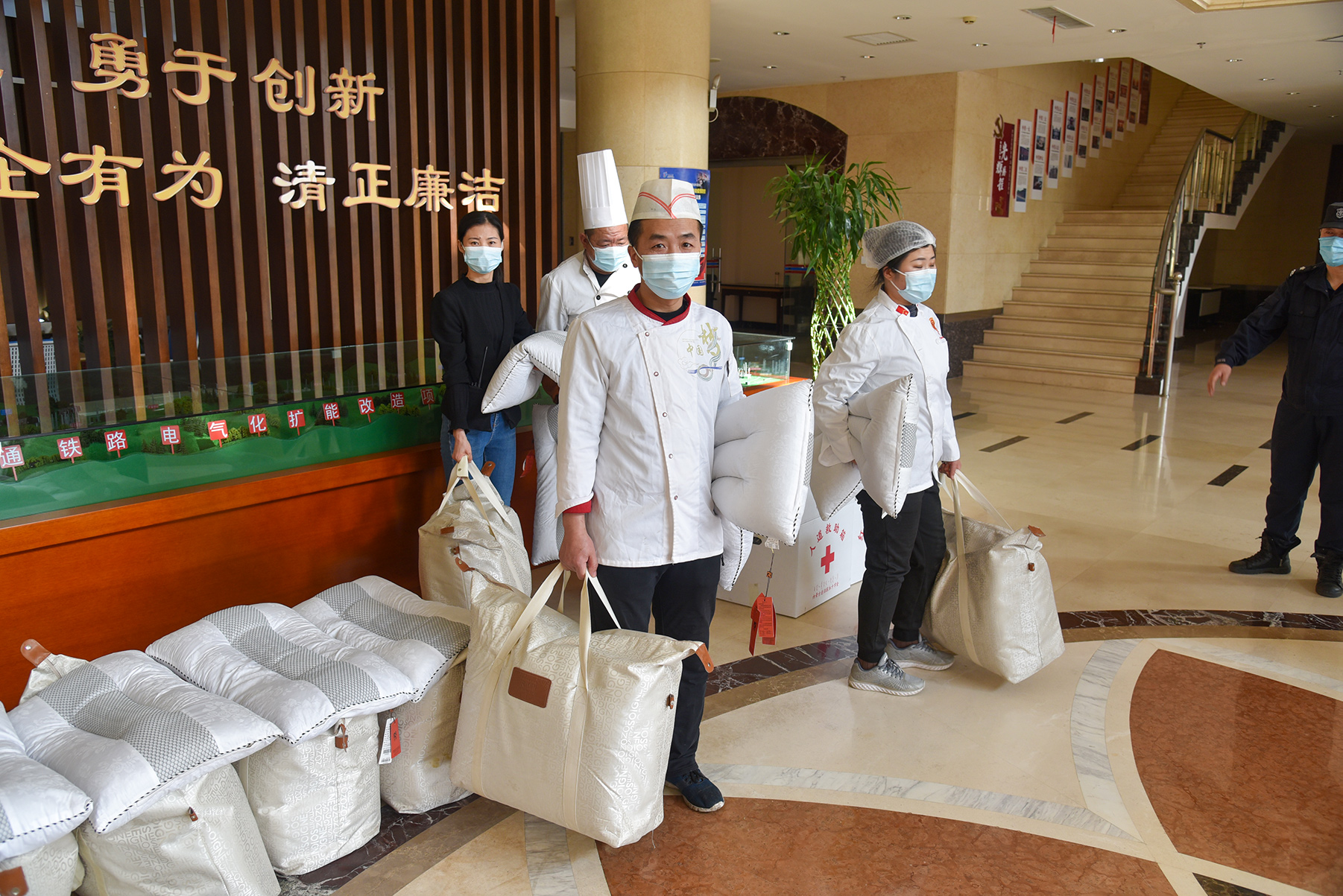 集團食堂職工領(lǐng)取慰問品 小段/攝