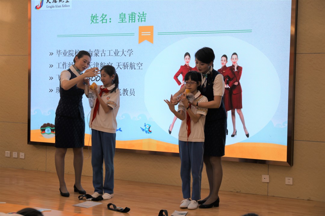 60分鐘的航空知識講座,由天驕航空夏冰機長為同學(xué)們深入淺出的講解了航空歷史、飛機構(gòu)造、飛行原理等,空勤人員詳細(xì)介紹了自己的職業(yè)特點并為學(xué)生們展示了氧氣面罩、救生衣、安全帶的正確使用方法。講座寓教于樂、深入淺出、啟發(fā)互動,內(nèi)容精彩紛呈,孩子們也踴躍發(fā)言,主動學(xué)習(xí)航空知識。每一名參加活動的天驕人用愛與責(zé)任帶動現(xiàn)場的孩子們,在感受航空飛行魅力的同時,努力激發(fā)孩子們崇尚科學(xué)、翱翔藍(lán)天的熱情與向往,幫助孩子們從小樹立報效祖國、建設(shè)家鄉(xiāng)的“航空夢”“大飛機夢”和“中國夢”。