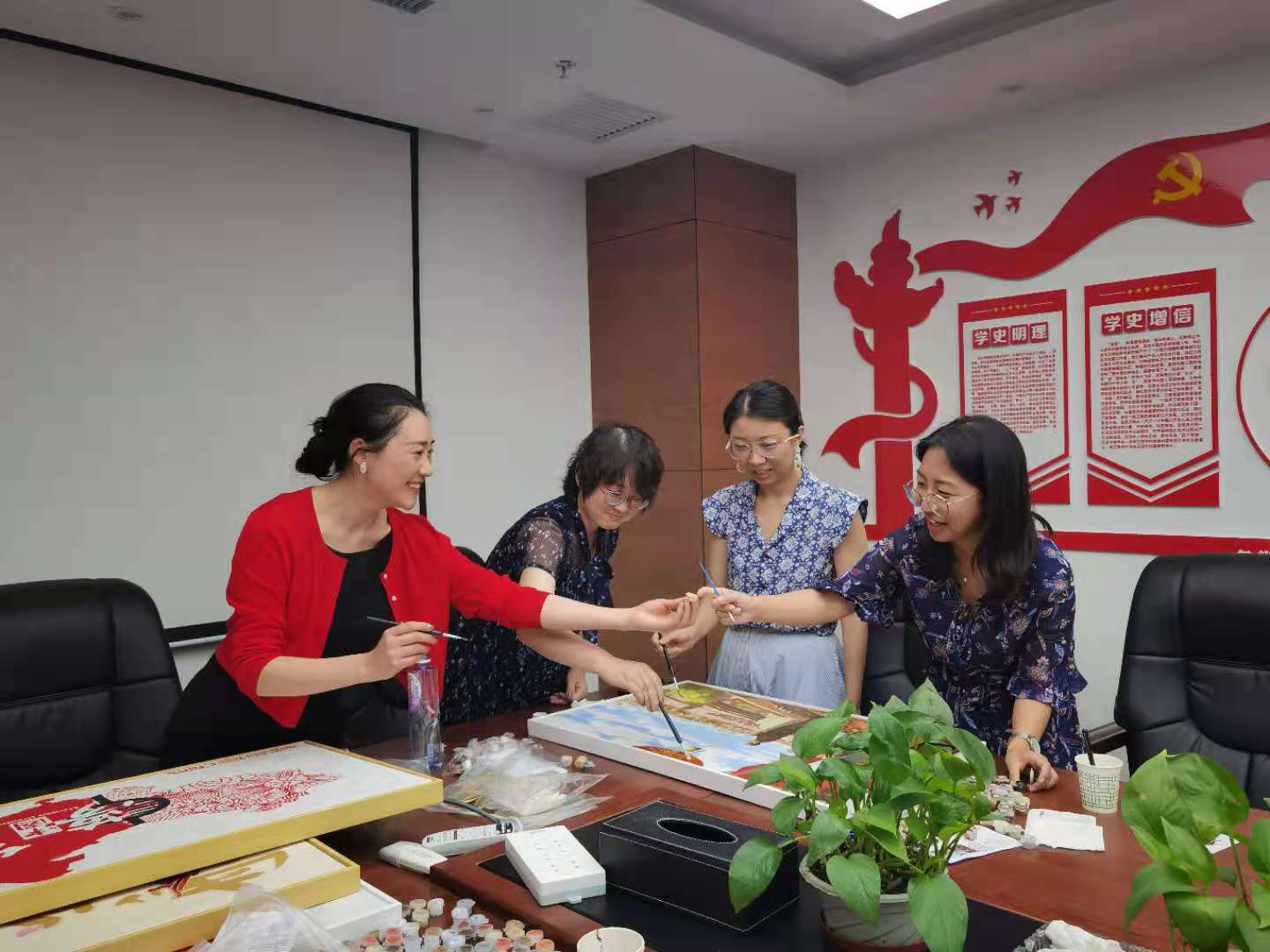 歷時一個月,利用業(yè)余時間,女職工們用手中的畫筆用心描繪百年黨史中“重大事件”、“重要會議”、“重要人物”、繪畫將以時間順序于7月1日在集團本部展出。繪畫主題聚焦“起航”、“長征”、“延安精神”、“開國大典”、“春天的故事”、“中國夢”等黨史故事,回顧了中國共產(chǎn)黨從建黨的開天辟地,到新中國成立的改天換地,到改革開放的翻天覆地,再到黨的十八大以來黨和國家事業(yè)取得歷史性成就、發(fā)生歷史性變革,中國共產(chǎn)黨堅守初心使命,團結帶領人民創(chuàng)造的輝煌成就,書寫了人類發(fā)展史上偉大傳奇,社會主義中國以更加雄偉的身姿屹立于世界東方,中華民族迎來了從站起來、富起來到強起來的偉大飛躍。