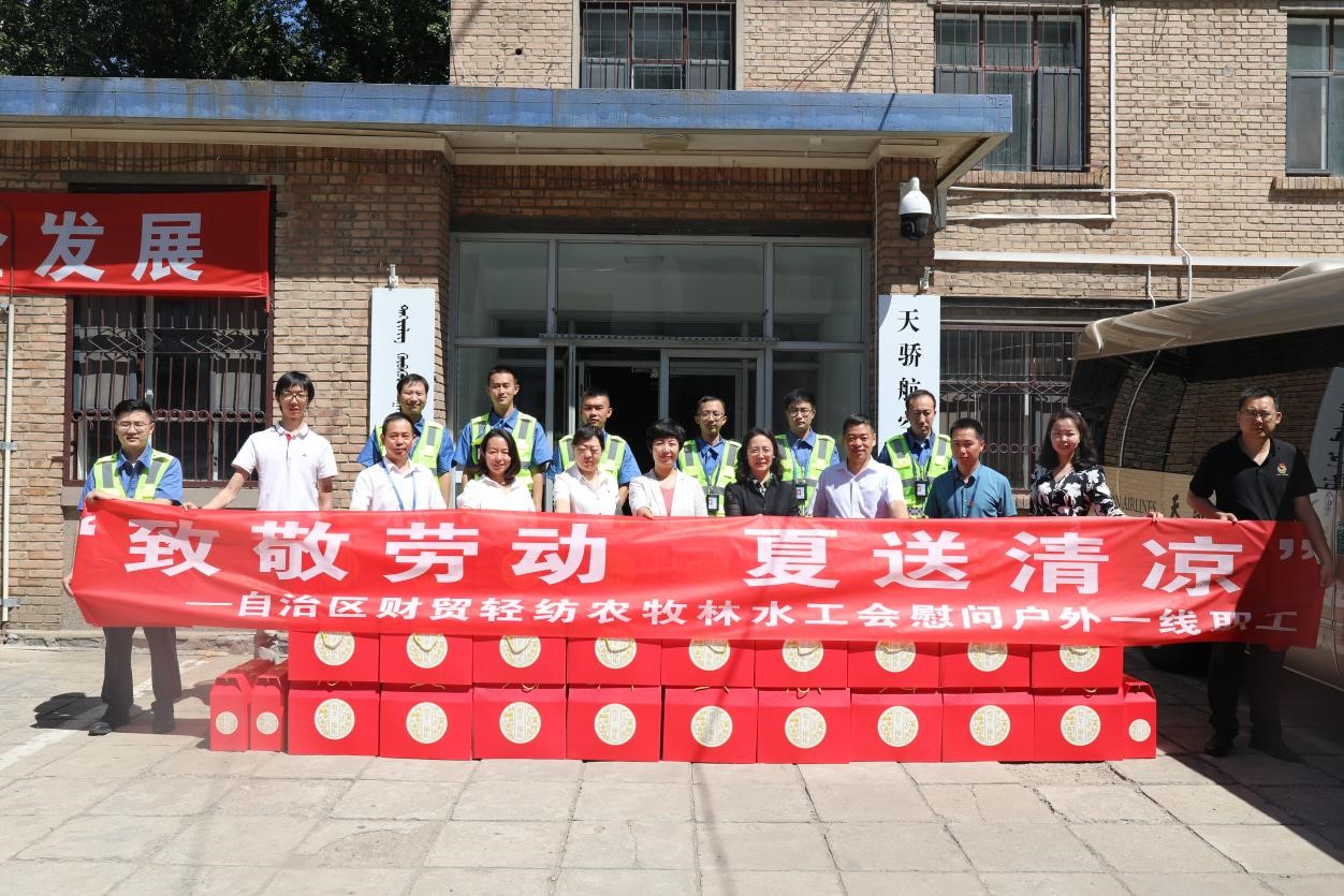 7月9日上午,為深入推進(jìn)黨史學(xué)習(xí)教育,積極開展“我為群眾辦實(shí)事”實(shí)踐活動(dòng),內(nèi)蒙古自治區(qū)財(cái)貿(mào)輕紡農(nóng)牧林水工會(huì)副主席劉潔一行與內(nèi)蒙古交通投資集團(tuán)工會(huì)副主席許曉紅一行組成慰問組,冒著酷暑高溫赴天驕航空有限公司,向高溫天氣仍奮戰(zhàn)在生產(chǎn)一線的維修工程部職工開展主題為“致敬勞動(dòng)·夏送清涼”慰問活動(dòng),送去精心準(zhǔn)備的防暑降溫慰問品。天驕航空副總裁盧東哲、工會(huì)主席周雪松、維修副總裁魏鵬等領(lǐng)導(dǎo)陪同慰問。