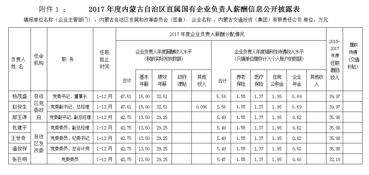 2017年度內(nèi)蒙古自治區(qū)直屬國有企業(yè)負(fù)責(zé)人薪酬信息公開披露表