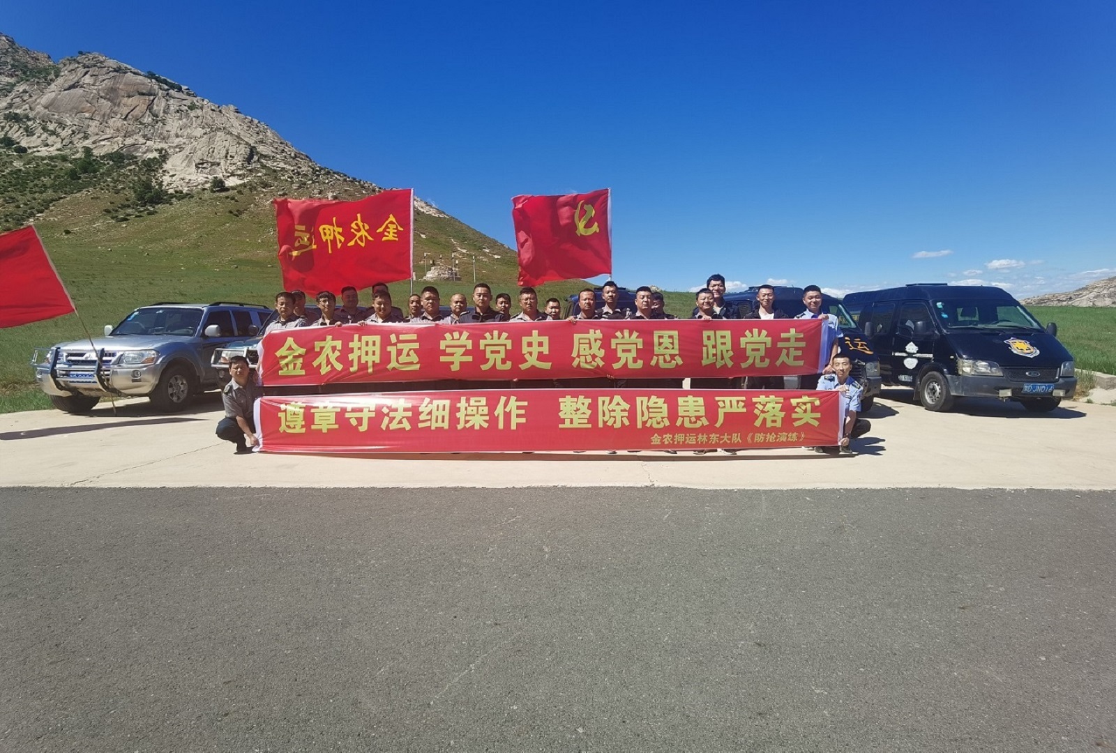 建黨100周年在即,為了深入貫徹落實習近平總書記關于安全生產(chǎn)重要論述,扎實推進全國安全生產(chǎn)專項整治三年行動集中攻堅和安全宣傳“五項”工作,6月17、18日,內蒙古金農保安押運服務有限公司董事長云瑞平,總經(jīng)理包克勤聯(lián)合當?shù)毓膊块T,對金農公司赤峰、通遼、錫盟等分公司的企業(yè)安全生產(chǎn)、消防主體責任落實情況,三年行動整治任務進展、隱患問題整改等進行了檢查。檢查組還查閱了重要區(qū)域安全保衛(wèi)責任制、安全管理制度、崗位操作規(guī)程等落實情況,重點槍支彈藥等安全設施設備維護保養(yǎng)情況、重大危險源監(jiān)控監(jiān)測以及應急連鎖等情況進行檢查,落實“五個安全”即“人員的安全、槍支彈藥的安全、守護金庫的安全、運鈔車的安全、服務目標的安全。督促檢查開展“防搶”應急演練,觀看演練視頻,要求各分公司、押運大隊把隱患排查做到日常化、全面化,落細落實重大危險源的日常安全管理,建立安全隱患排查長效機制,舉一反三持續(xù)提升安全管理能力和水平,確保節(jié)日期間人、槍、車的萬無一失,全力以赴為慶祝建黨100周年營造良好安全生產(chǎn)環(huán)境。