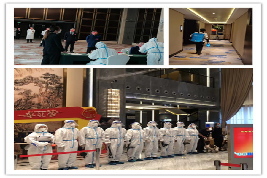 (圖為發(fā)展大廈酒店開(kāi)展員工核酸檢測(cè)、日常消殺、服務(wù)保障工作)