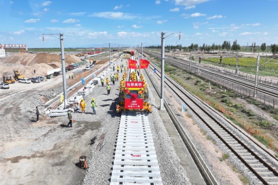 日前,由內(nèi)蒙古交通投資集團參與投資建設(shè)的包銀高鐵內(nèi)蒙古段進入軌道工程施工階段。